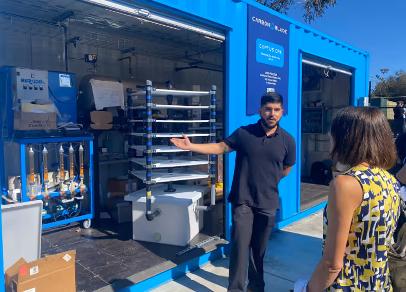 Carbon Blade, a leader in carbon dioxide removal (CDR) technology, is partnering with UC San Diego’s Center for Energy Research (CER) to test an innovative direct air capture (DAC) system. This pilot project aims to validate a low-energy, electrochemical CO₂ removal process in a real-world setting, accelerating its path to commercial deployment. The containerized DAC system draws air from the atmosphere using a specialized electrochemical solvent to selectively capture CO₂. The solvent is then regenerated through an electrolytic separation process, significantly reducing energy consumption compared to traditional methods. The system is being tested at UC San Diego’s Power Islanding and Energy Storage Innovation Facility (ESIF), an advanced large-scale testing site designed for grid-connected energy research and technology validation projects. Researchers from UC San Diego’s Energy Storage Group along with University research students will operate the system, gathering critical data to optimize its performance and efficiency.